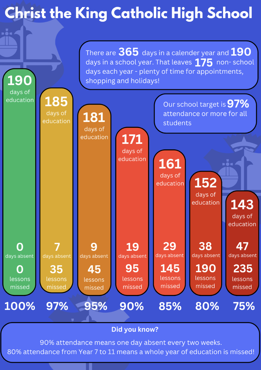 By selecting Christ the King you become part of our school community, staying off means your child misses out on rewards and activities. Christ the King School will refer to the local authority for monitoring period and fines.